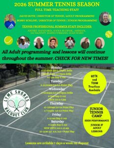 And starting June 1st, once our outdoor Har-Tru courts open, our morning programming heads outside!